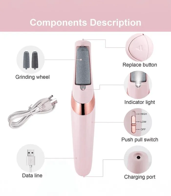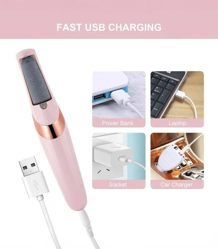 جهاز كهربائي لتجميل القدمين، مزود بمبرد آلي لإزالة الجلد الميت والصلب، يعمل بالشحن عبر USB، مثالي للعناية بالقدمين في المنزل بسهولة وفعالية