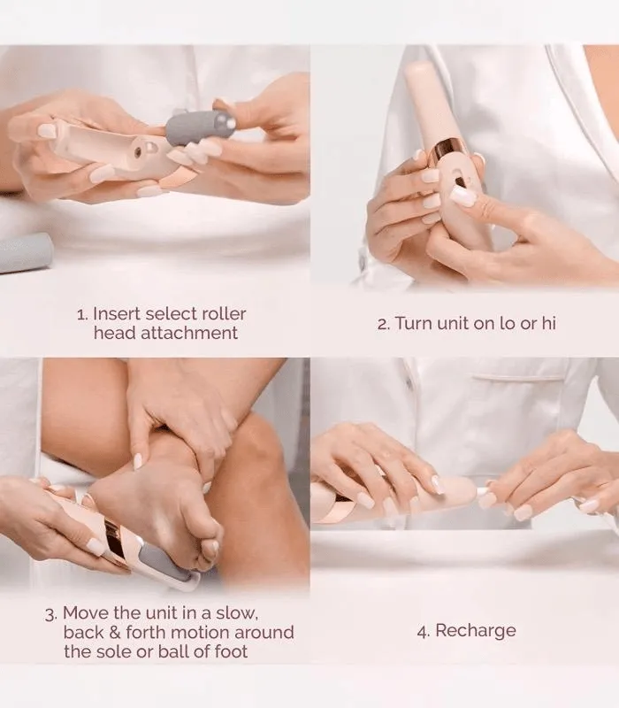 2. التشغيل: شغّل الجهاز ومرره بلطف على المناطق المراد علاجها من القدم لإزالة الجلد الميت.