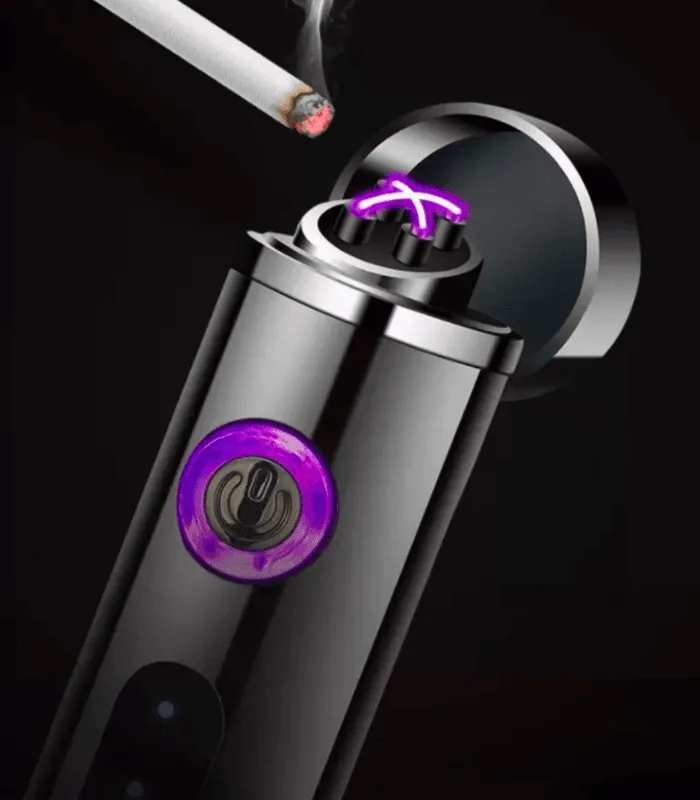 2. التشغيل: اضغط على الزر الجانبي لتفعيل القوس الكهربائي وإشعال السجائر أو الشموع.