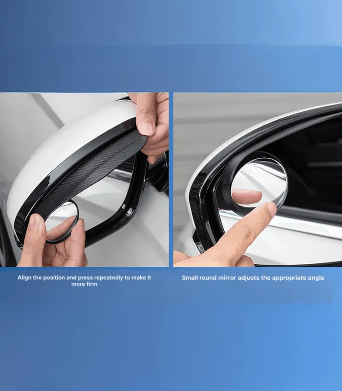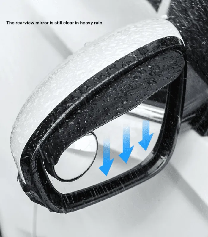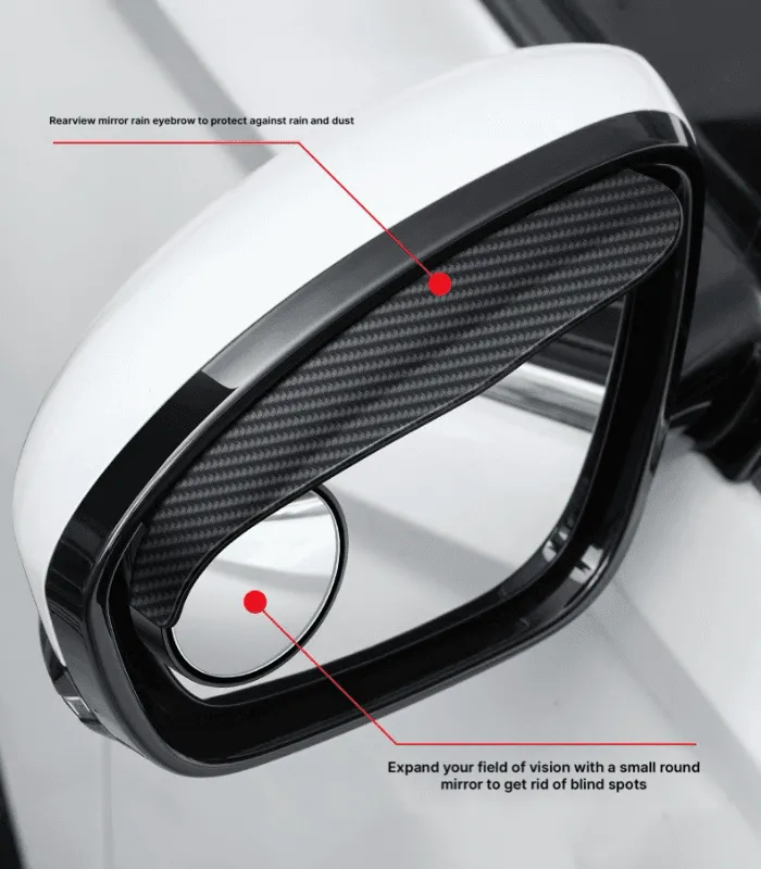 مجموعة مرايا جانبية مبتكرة للسيارة، تتضمن حاجبًا لمنع تساقط الأمطار على المرآة ومرآة صغيرة مدمجة لتوسيع مجال الرؤية وتقليل النقاط العمياء، مما يعزز السلامة أثناء القيادة في مختلف الظروف الجوية