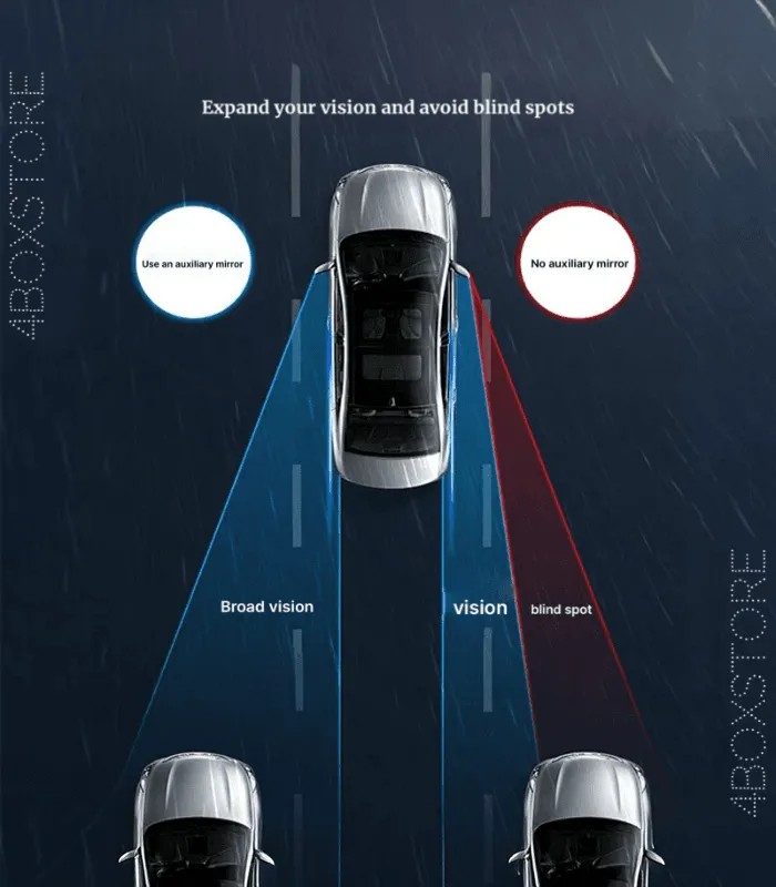 تساعد المرآة الصغيرة المدمجة في توسيع مجال الرؤية الجانبية، مما يقلل من النقاط العمياء ويزيد من الأمان عند تغيير المسارات أو الانعطاف.