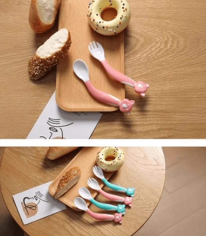 مجموعة التدريب على الأكل للأطفال – شوكة وملعقة قابلة للانحناء