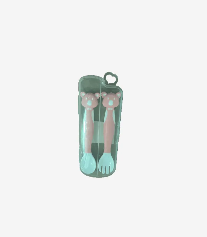 شوكة وملعقة بزاوية قابلة للتعديل لتناسب يد الطفل، مما يجعل التعلم أكثر سهولة.