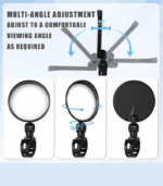 مراية جانبية عملية للدراجات والموتوسيكلات، بتوفر رؤية خلفية واسعة وتقلل النقاط العمياء، مع تصميم خفيف وسهل التركيب بدون أدوات.