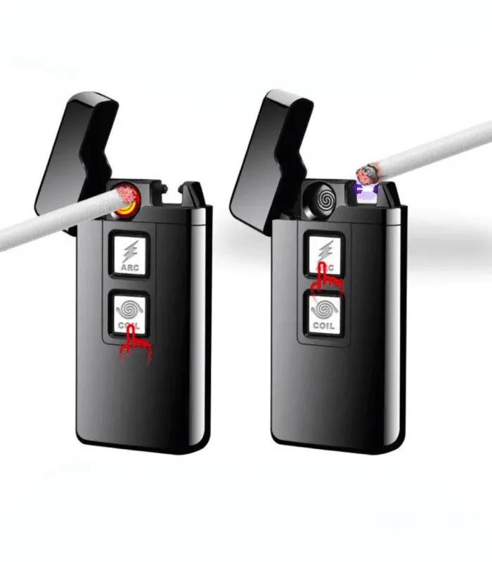 ⚡ Dual Arc Plasma – Windproof and flameless. Ideal for lighting in any weather condition.