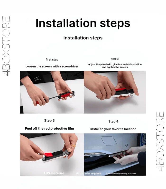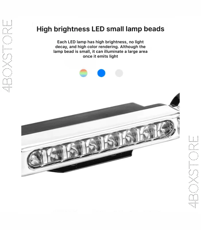 • لا حاجة لتوصيل المصابيح بالبطارية أو النظام الكهربائي للسيارة، مما يجعل التركيب سهلاً وسريعًا.